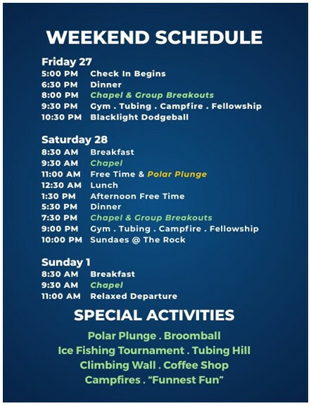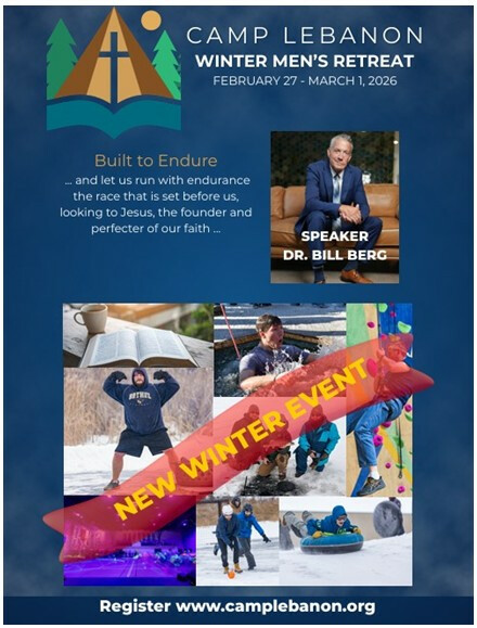 Friday, February 27, 2026, 5:00 PM - Sunday, March 01, 2026, 11:00 AM For more information and to register go to: www.camplebanon.org Add to Calendar